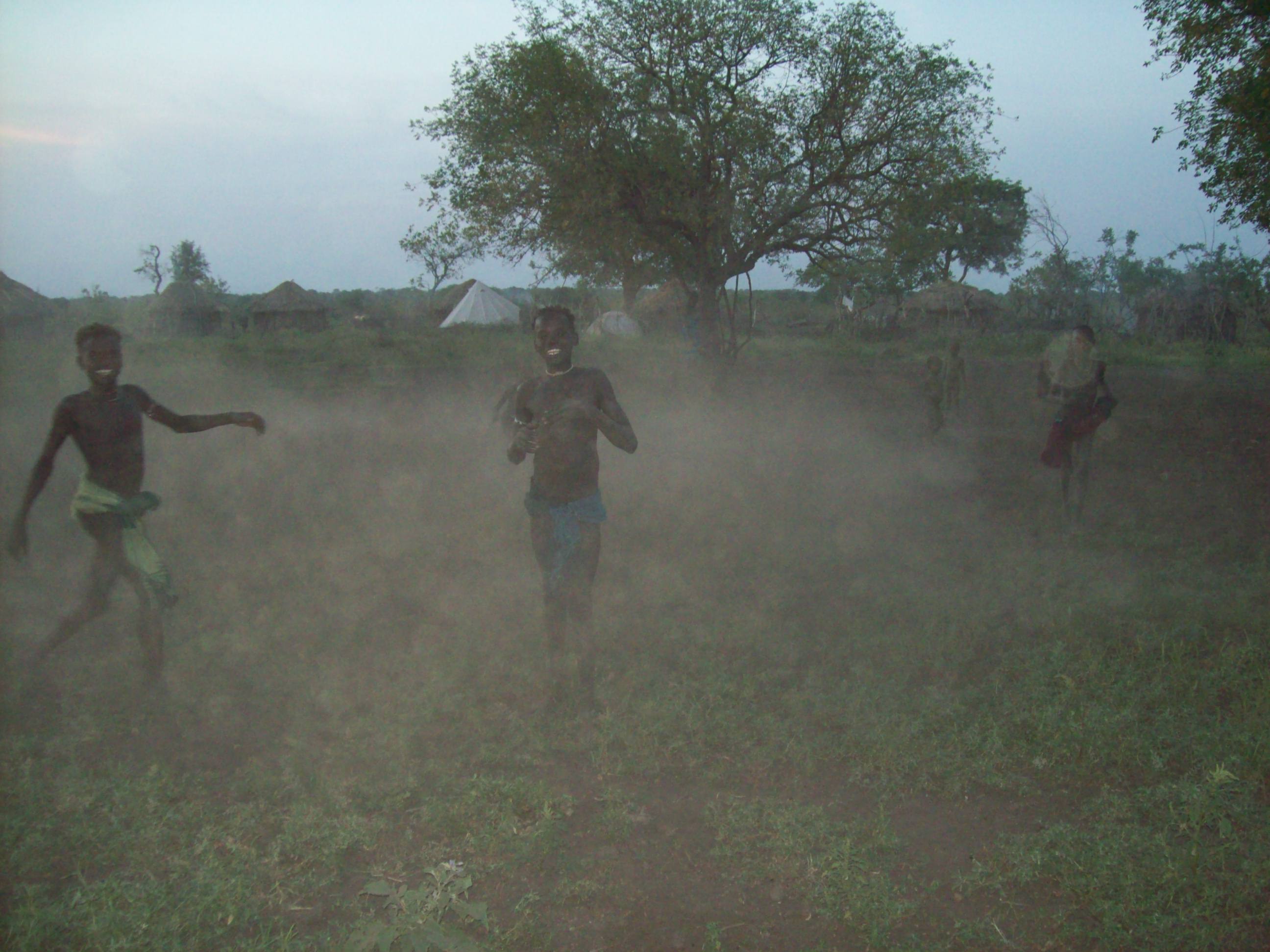 Playing 'hide-and seek' or 'catch' in the dust