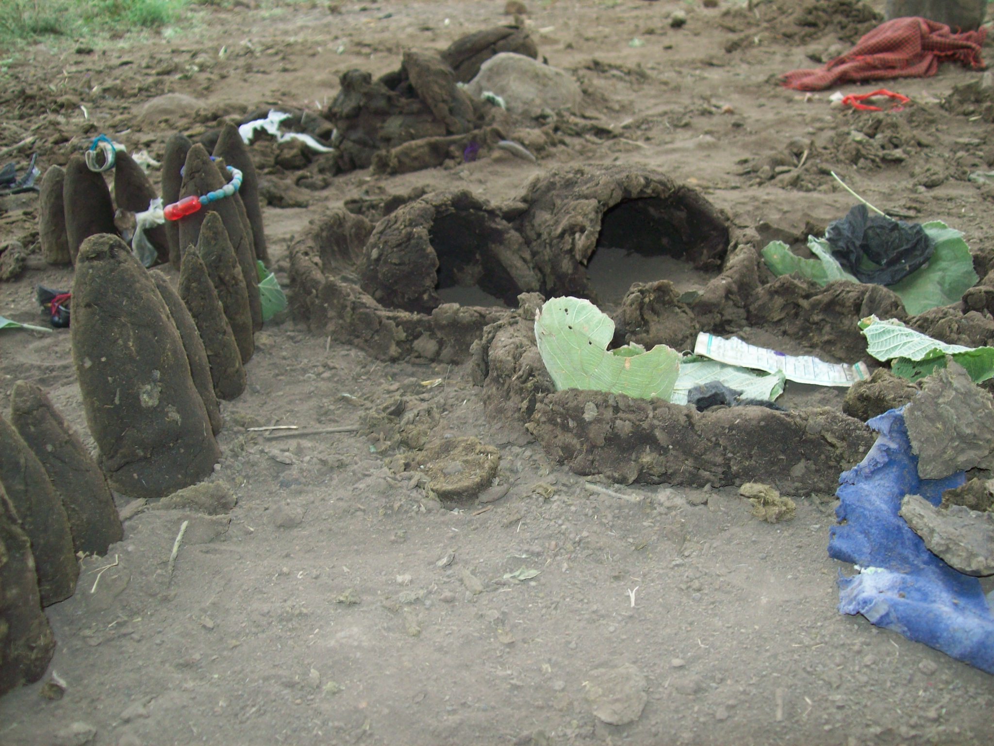 Young girls and boys model dung and mud into a little village populated by little abstract shaped mud people wearing their beads (Ulumholi, 201 0)