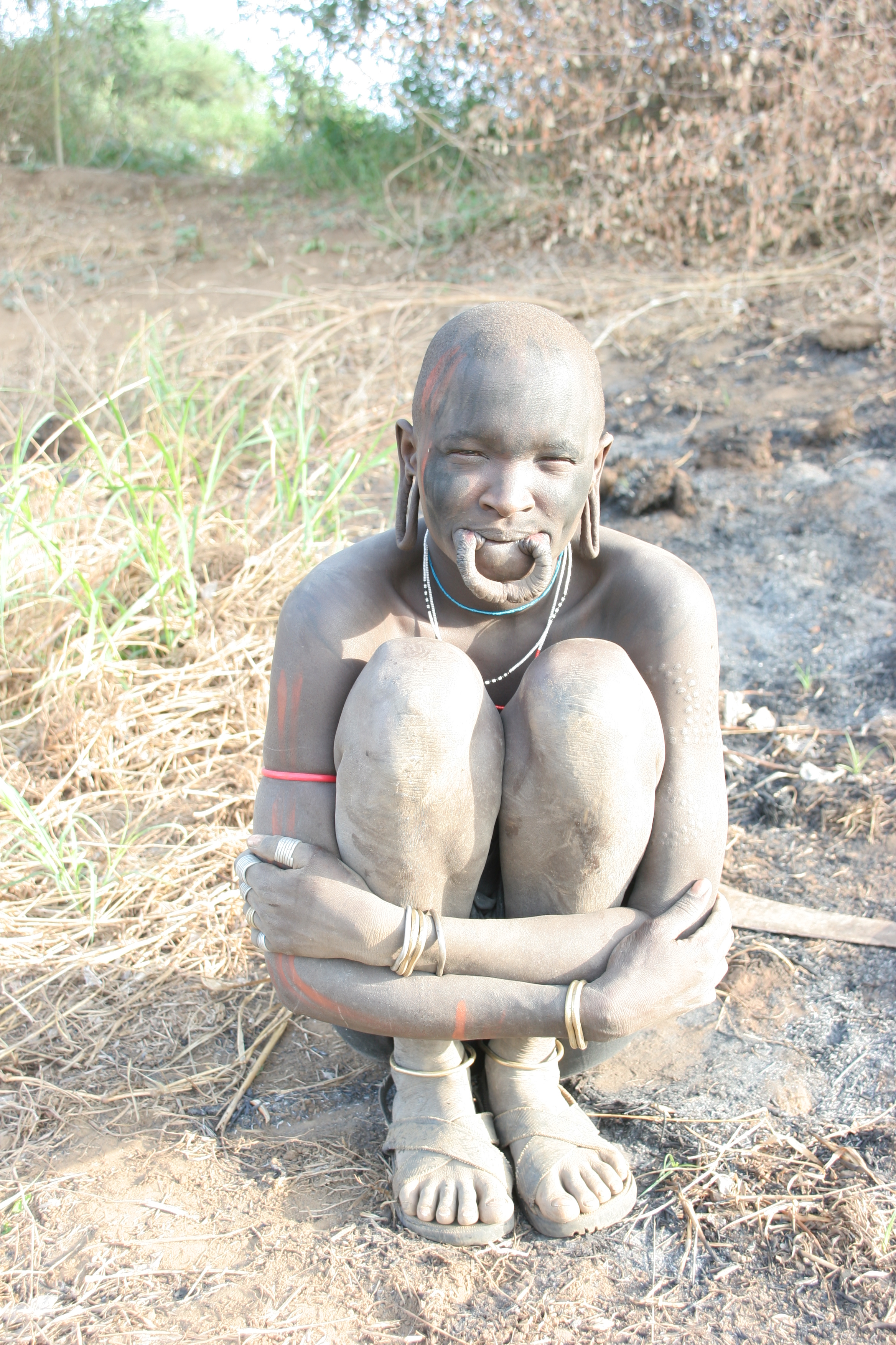This young woman is resting at her garden in the morning sun after the entire village had woken early to be anointed with black charcoal and a red stripe of ochre to prevent an epidemic of measles spreading to their village.