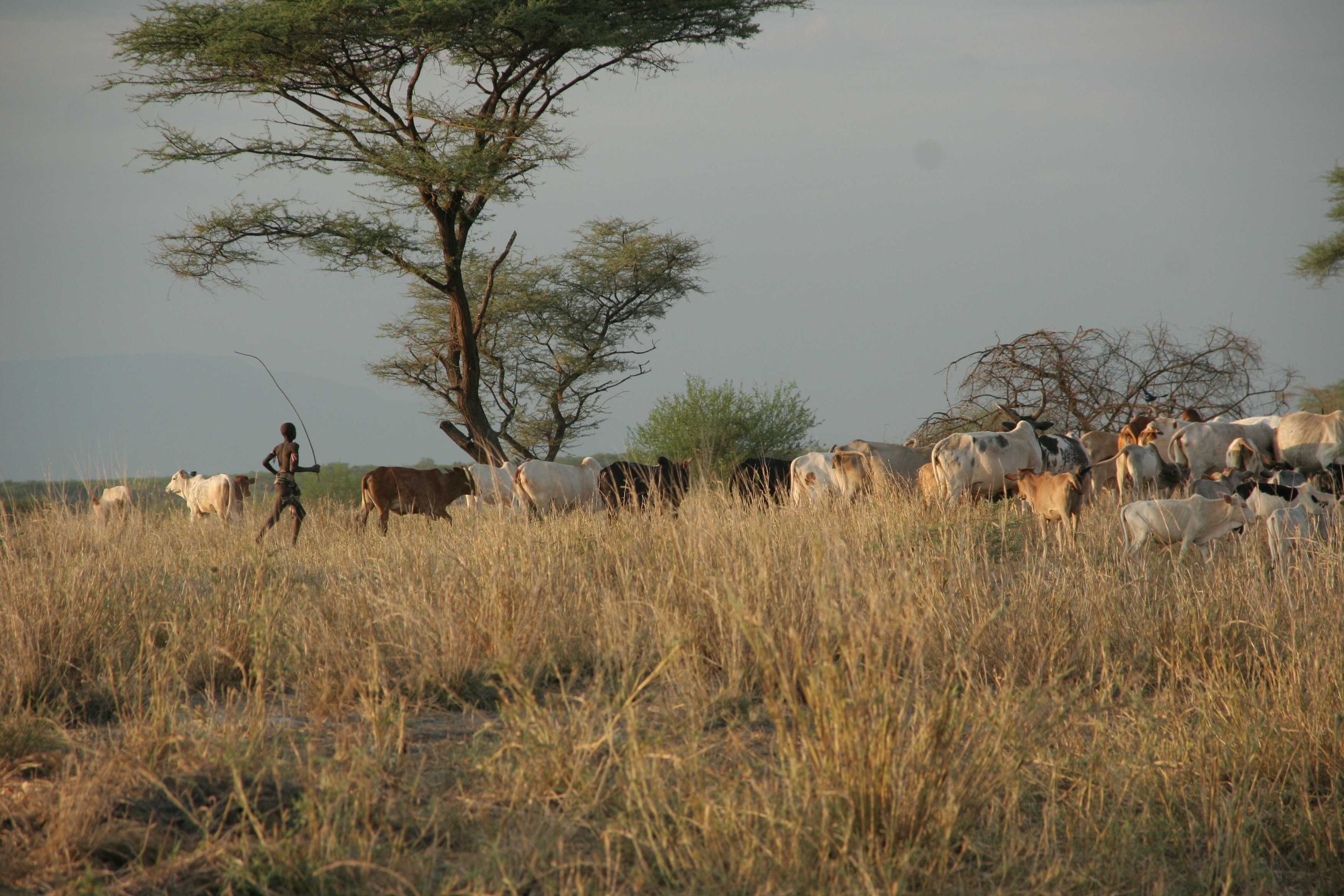 Herding the cattle during the dry season, at a place called Bulu, near the Omo.